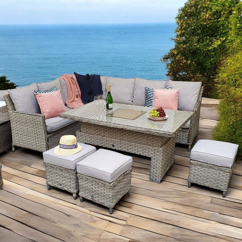 The Creative Living Georgia Grey Corner Dining Set is a stylish and contemporary solution for outdoor dining and relaxation. This 8-seater set is b...