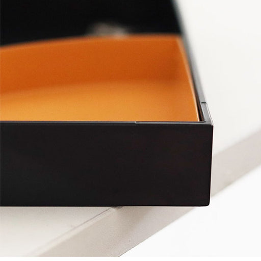 This square tray main body is black, featuring two semi-circular compartments. One compartment is bright yellow, and the other is warm orange. The ...