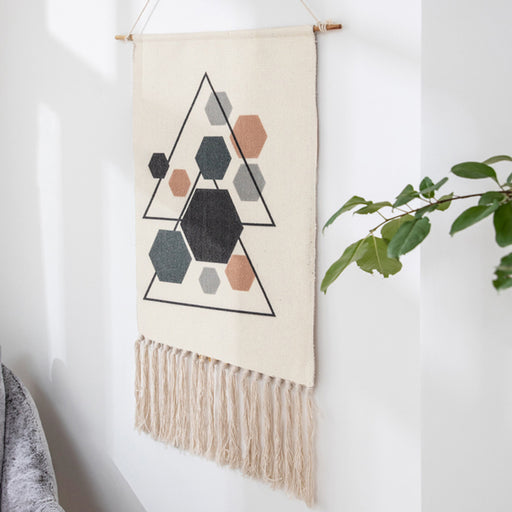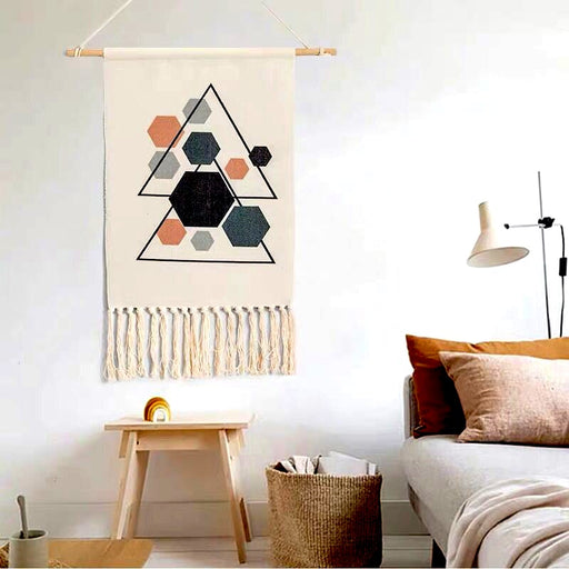 UNIQUE DESIGN: This bohemian tapestry has strong layering and symmetrical hexagon art pattern. It's made of hanging lever, hanging roping and elega...