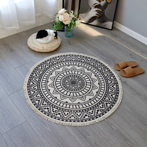 Bohemia-inspired round cotton rug, finished with tassel trim for accent decor in any space, perfectly suitable for living room, bedroom, kids room,...