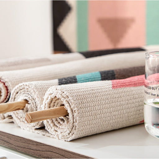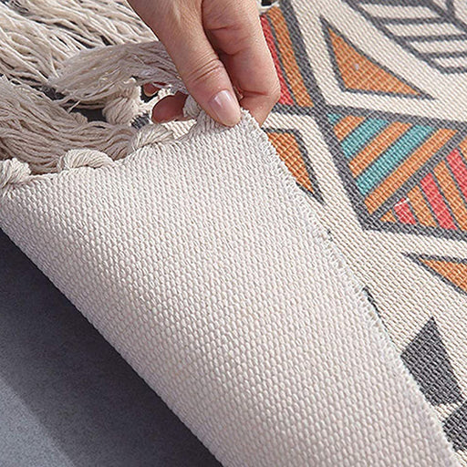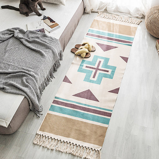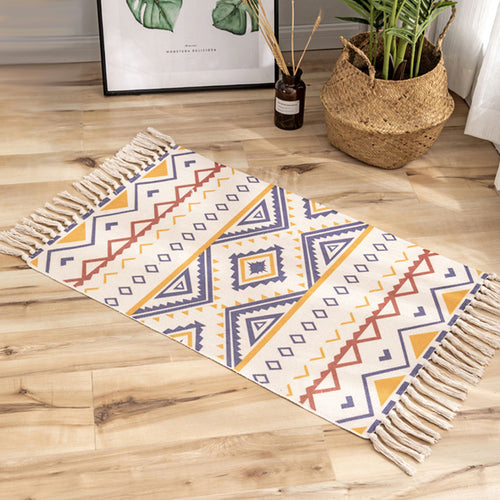 Bohemian Tassel Trim Rectangle Rug – Stylish & Versatile Home Décor Enhance your living space with this Boho-inspired rectangle cotton rug, fea...