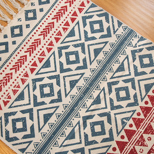 Bohemian-Inspired Rectangle Cotton Rug with Tassel Trim Add a touch of boho charm to your home with this beautifully crafted rectangle cotton rug. ...