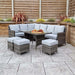The Edwina Sofa and Dining set comprises of a corner group, 3 stools and a glass-topped dining table. This stylish garden furniture range features a contemporary and elegant design, and the modern interpretation of the classic rattan construction is sure to capture the attention in your garden! The Edwina collection includes high-strength powder-coated aluminium frames, a UV treated wicker rattan exterior, reinforced glass table tops, and water and stain-resistant padded fabric seat cushions, that all combine to create stylish and sumptuously comfortable seating.