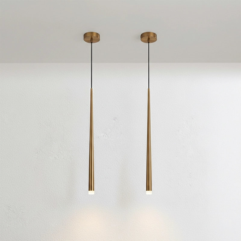 Sold as a set of two, the Linéa Slim Pendant Light – Gold features a refined and slender design that suits modern, Nordic, and transitional interiors. Their minimalist silhouettes complement both high and low ceilings, fitting beautifully into contemporary homes, cafés, and studios alike.