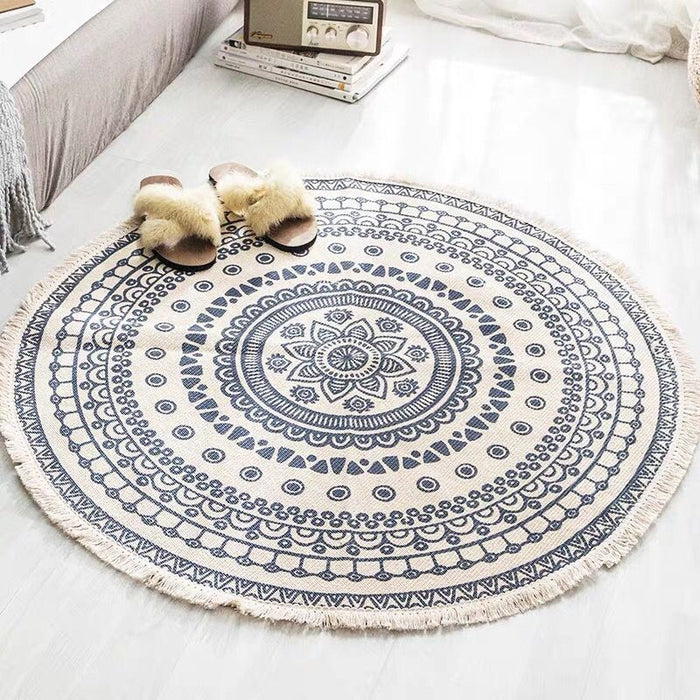 The round floor rug made of cotton linen. Tightly woven circle cotton throw carpet, great water absorption, good breathability and durability.