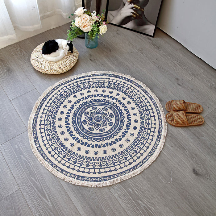 Bohemia-inspired round cotton rug, finished with tassel trim for accent decor in any space, perfectly suitable for living room, bedroom, kids room, kitchen, dining room, children playroom and more, a great home decoration floor mat.