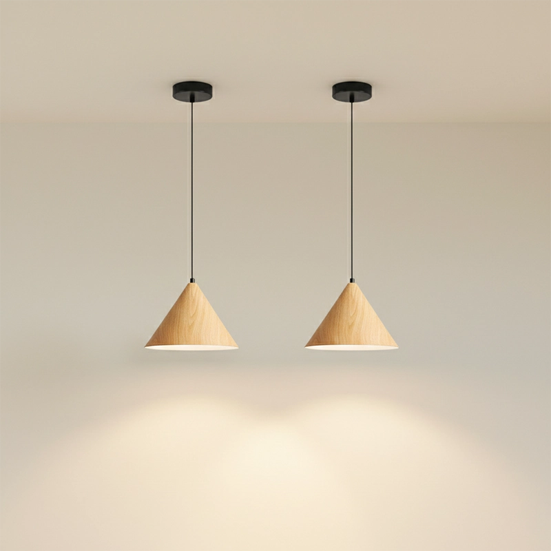 Light Oak Small Nordic Woodgrain Cone Pendant Light – Set of 2